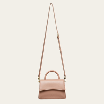 • Top handle and crossbody strap.