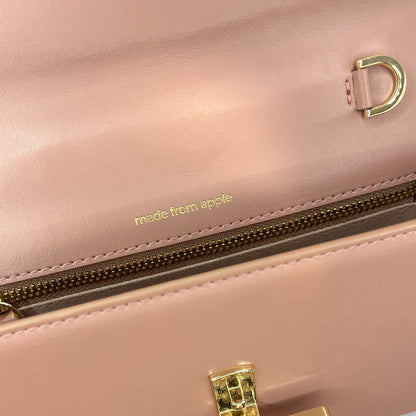 This PETA-approved innovation transforms discarded apple peels, a by-product of the fruit and juice industry, into a refined plant-based material, a thoughtful balance of recycling and luxury.